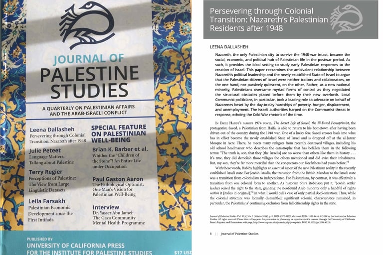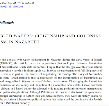 “Local Elections, National Questions: Local Politics in Nazareth During the Mandate.” Ha’aretz, June 15 (Hebrew)